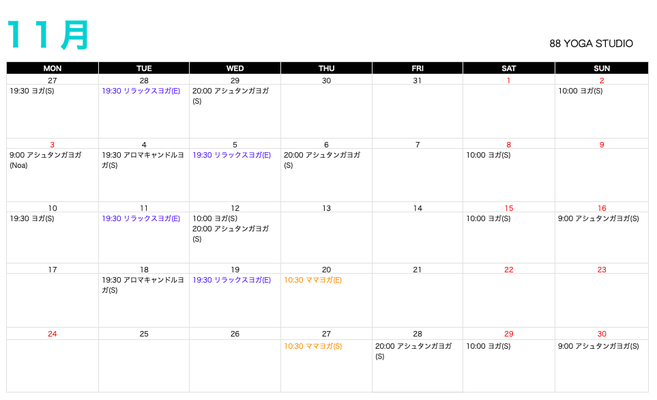 不定期に外でのclassもある為、sceduleの変更をすることがあります。